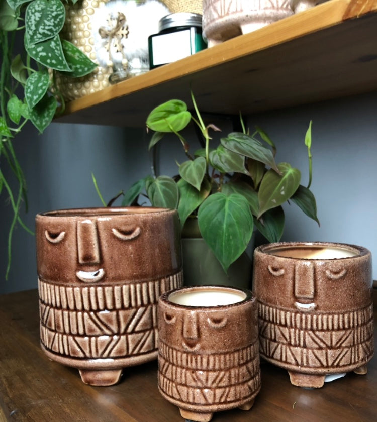 Family Ceramic Face Brown Plant Pot 3 Pcs Set Green Charm House Of Plants